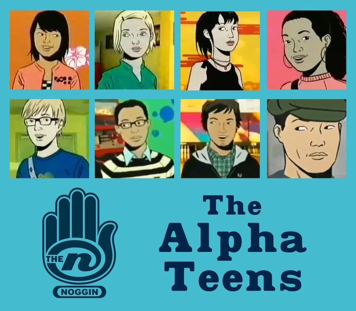 The Alpha Teens were the mascots of Noggin's teen block, The N. In between shows, the Alpha Teens talked about which shows were up next. They first appeared in 2004.