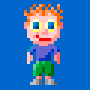 Noggimation Boy is one of the main characters of The URL with Phred Show. He is a hyperactive miniature boy made of 8-bit pixels. He is the host of the Noggimation segment in each episode. He is always jumping around and talks in a super-excited, high-pitched voice. He has stringy red hair and wears a purple shirt and green shorts. He is much shorter than the other characters and stands at about half of Phred's height.